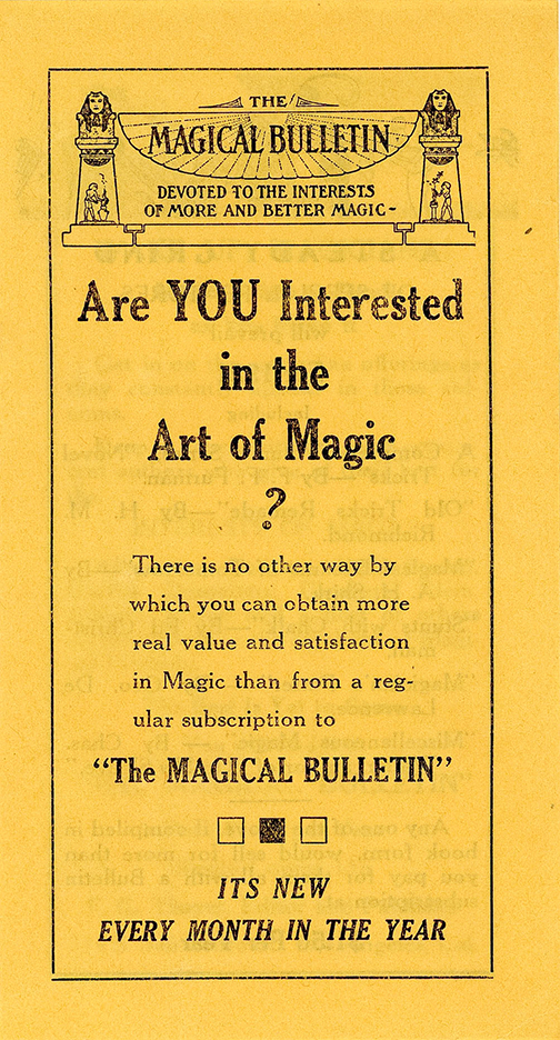 A 1921 prospectus for Floyd Thayer's Magical Bulletin. With a small mark on the front cover, but in excellent condition overall.