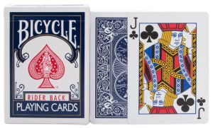 A card stand that assists in the performance of the classic four ace trick. With a television-themed script, and a clever use of the cut-outs in the stand to accomplish the effect, though ungimmicked cards may be used. Fits bridge size cards. Mild wear, else in good condition.