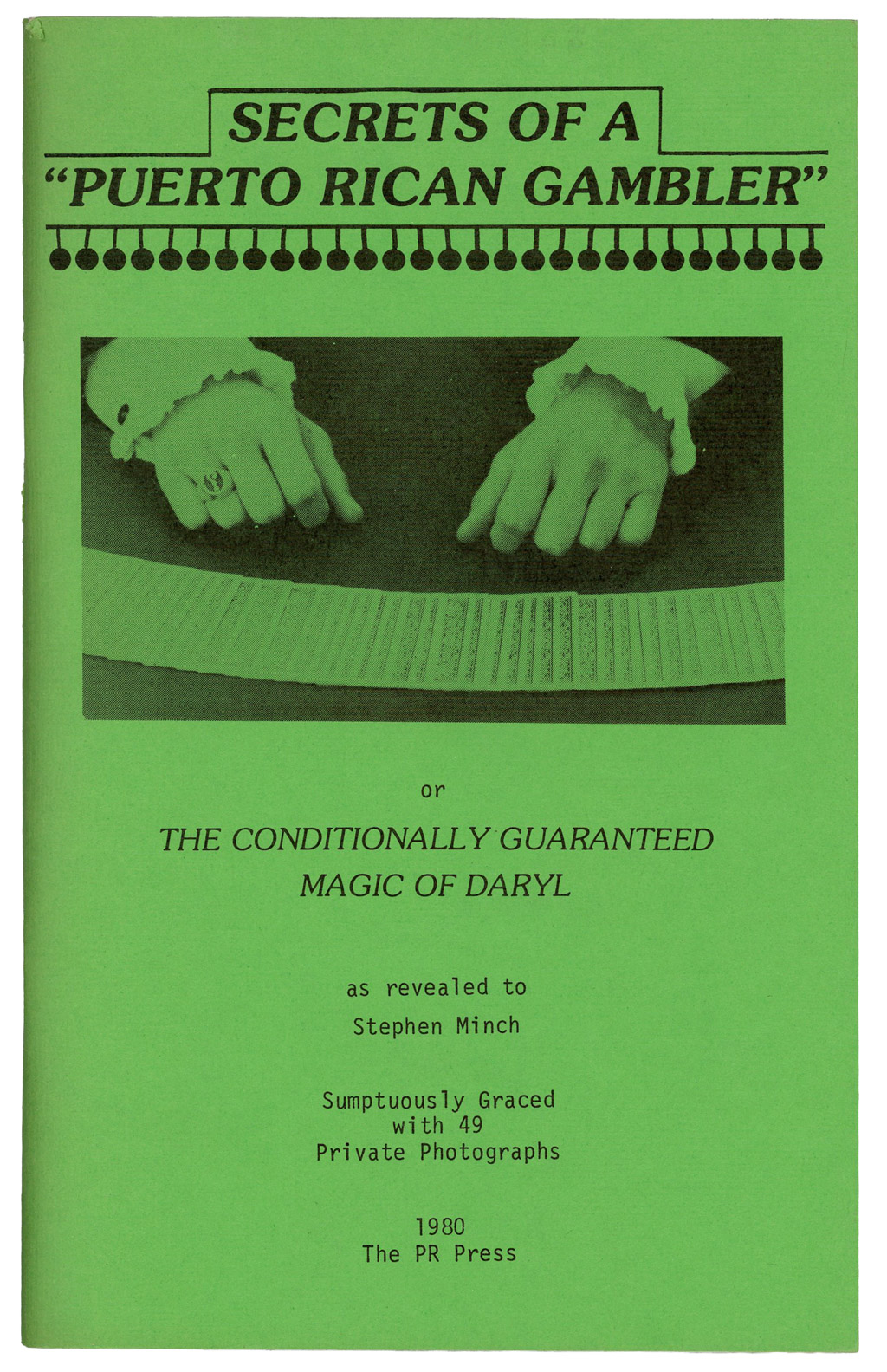 Second printing. Secrets of a "Puerto Rican Gambler" or the Conditionally Guaranteed Magic of Daryl. Pictorial green wrappers, illustrated, 115 pages. Mild toning to covers, else in very good condition.
