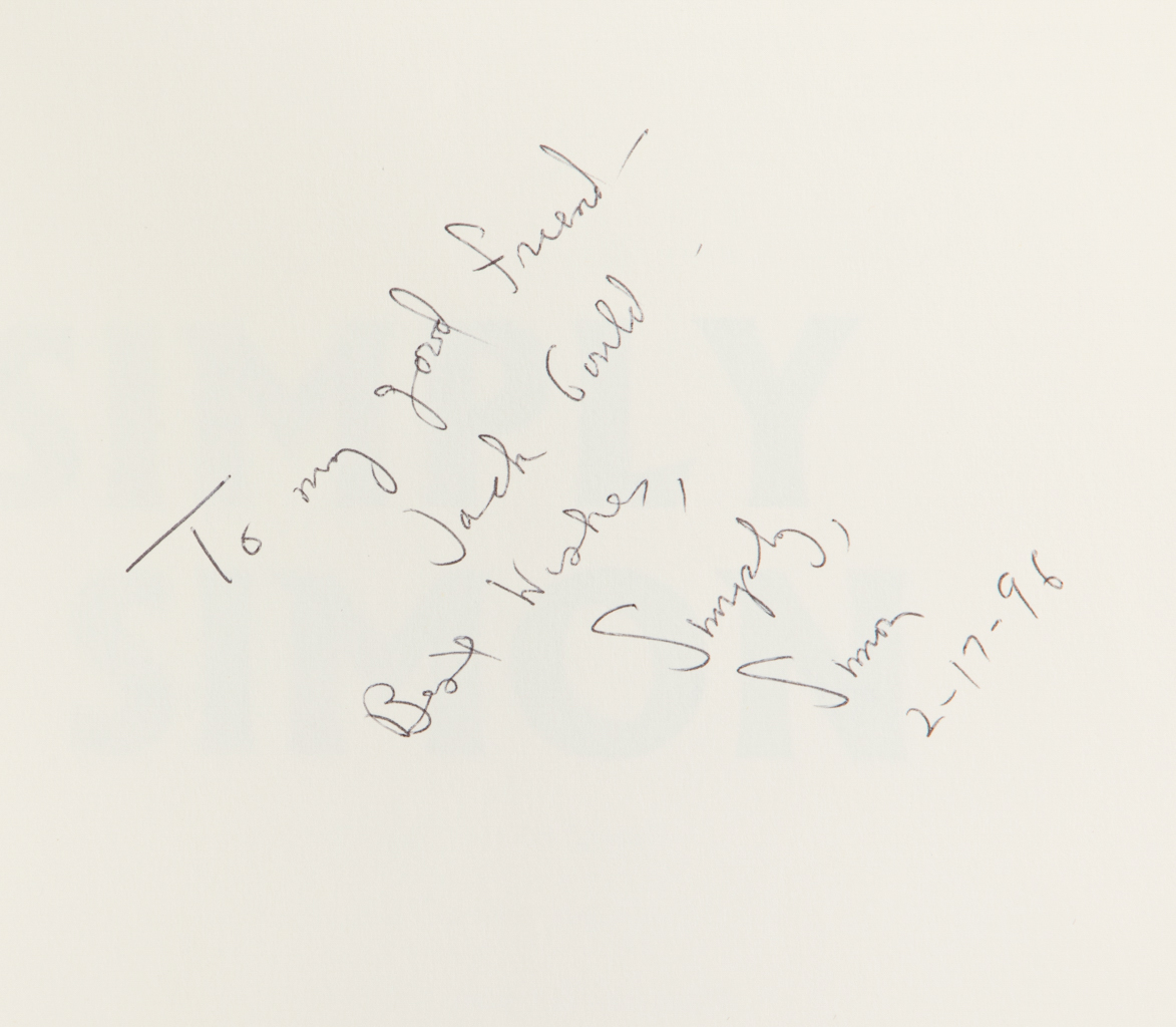 Simply Simon: The Magic of Simon Aronson. Black cloth with gilt stamping on spine, pictorial dust jacket. Illustrated, 308 pages. Inscribed and signed by the author. Toning to jacket spine, else in very good condition.