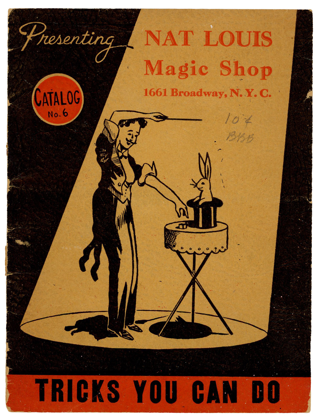 Nat Louis Magic Shop – before it became Tannen’s! – catalog. Pictorial wrappers, illustrated, 26 pages. Chips to covers, else in good condition.