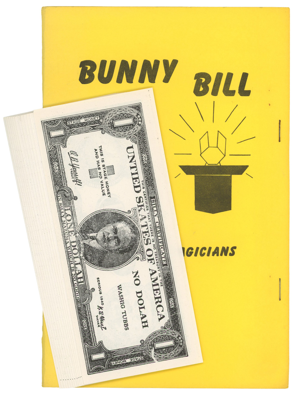 A dollar bill folded into the shape of a top hat is held between the thumb and forefinger. When the hat is squeezed, a rabbit appears instantaneously at its brim. Includes instructions. Very good condition.