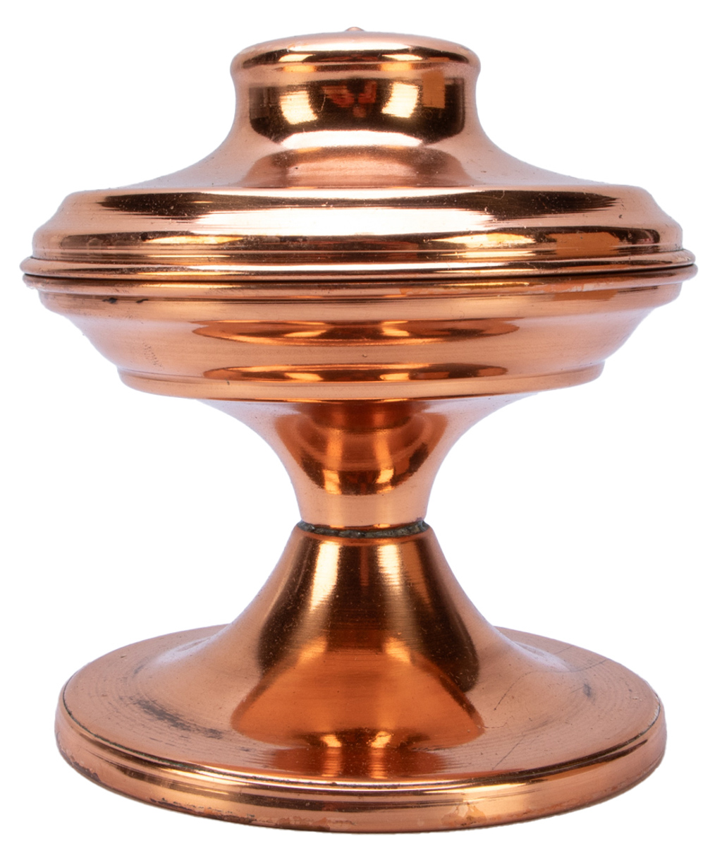 A spun copper card tripod switches one card for another or causes a card to simply vanish when covered. Includes the original box and instructions. Mild wear, else in very good condition.