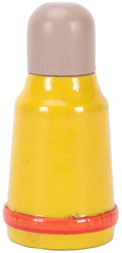 A miniature hand-painted wooden pillar vanishes from the magician’s hand. Clever gimmick allows a view of the pillar until the last moment, and yet after the vanish, the hands are shown unmistakably empty. Mild wear, else in very good condition.