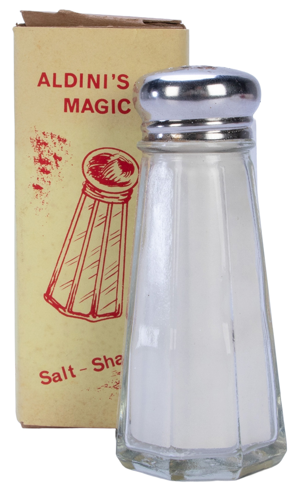 The magician pours out the salt in the shaker, yet it magically refills itself a moment later. Other routines are possible. Includes the original box. Some wear, else in good condition.