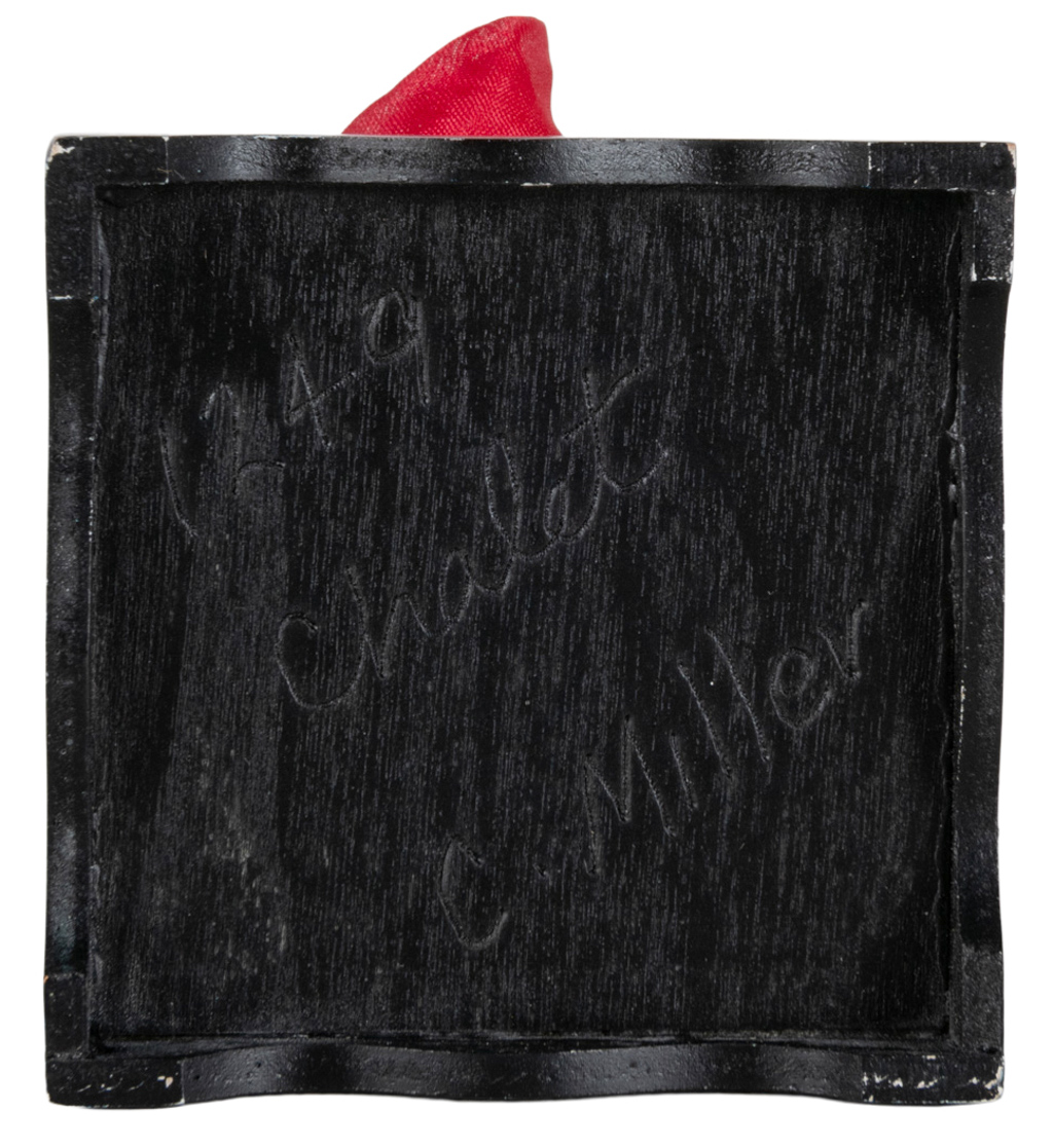 A small silk or sponge ball appears within the little empty blue box. Created by Clarence Miller. Signed and numbered. #1249. Very good condition.