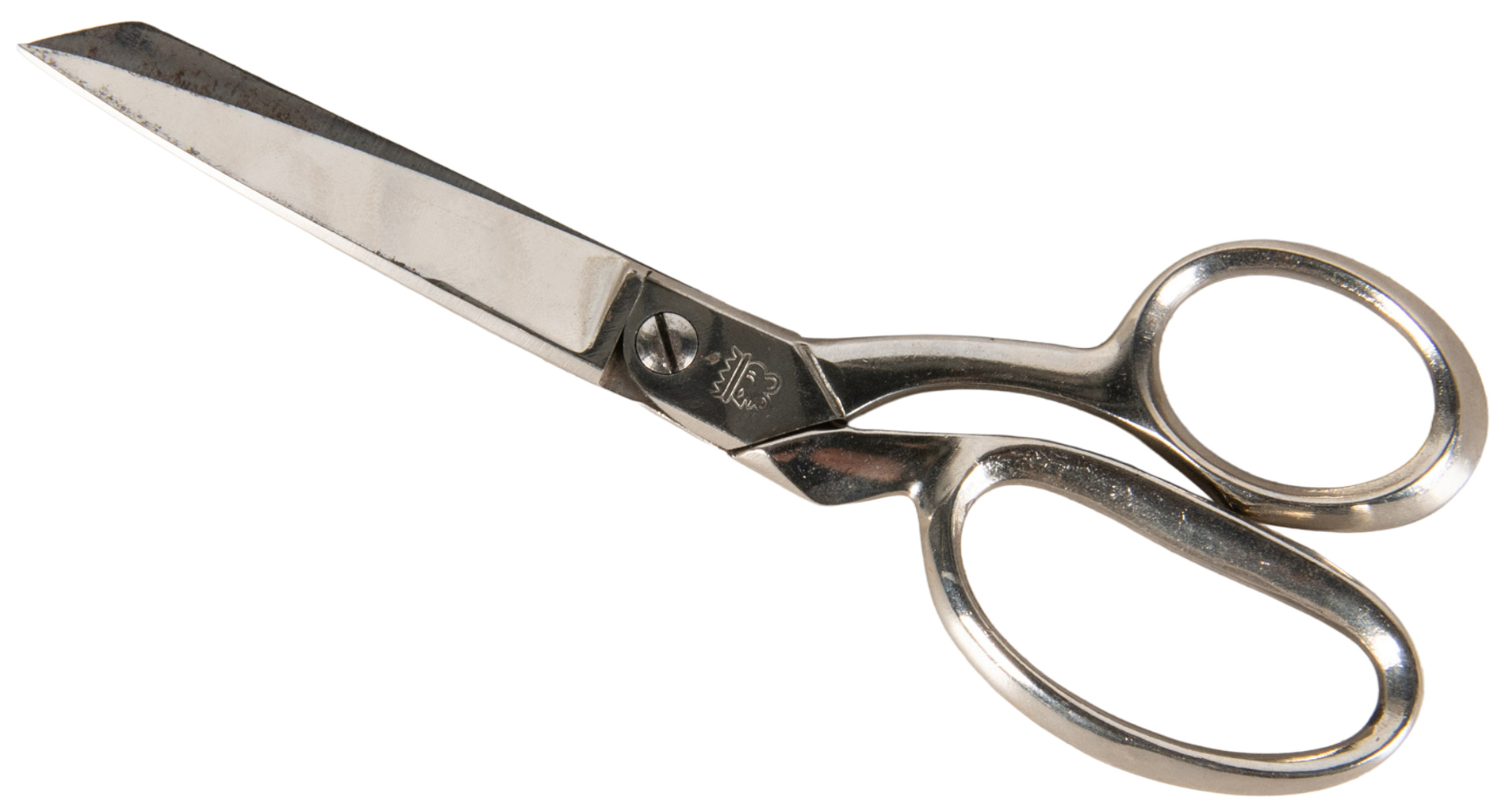Cleverly prepared scissors aid in the performance of a cut and restored ribbon effect. Does not include ribbon or instructions. A few small rust spots, else in very good condition.