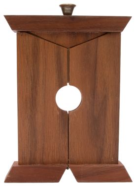 A coin is placed into a small holder at the end of a key chain. The holder is inserted into a frame, and then the key is pushed right through the center of the coin: metal through metal. Then the coin is shown to be unharmed. Created by Atsushi Fukano. Very good condition.