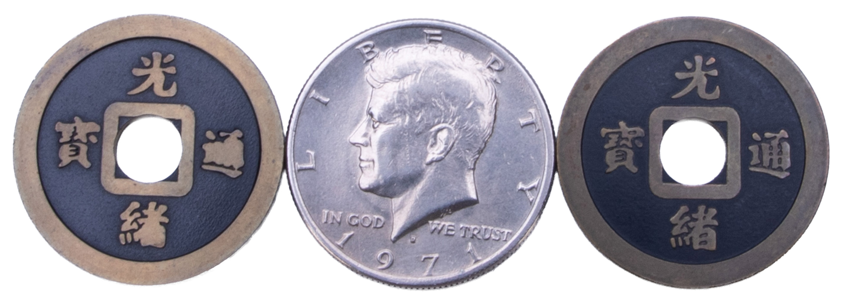 Also known as the Chinatown Half Dollar. The half dollar is dropped into an envelope while the Chinese coin is slowly and fairly placed into your hand. Instantly, they change places. Since no sleights are used, there is nothing for the skeptical spectator to detect. Very good condition. Invented by Ken Allen.