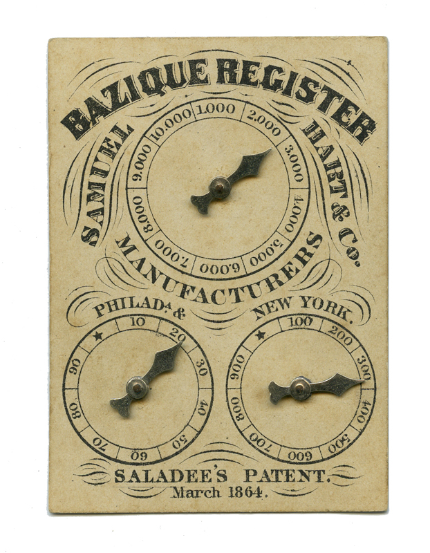 Bazique register printed on thick card stock with a playing card-style back and metal fixtures. Toned with some light foxing, else in good condition.