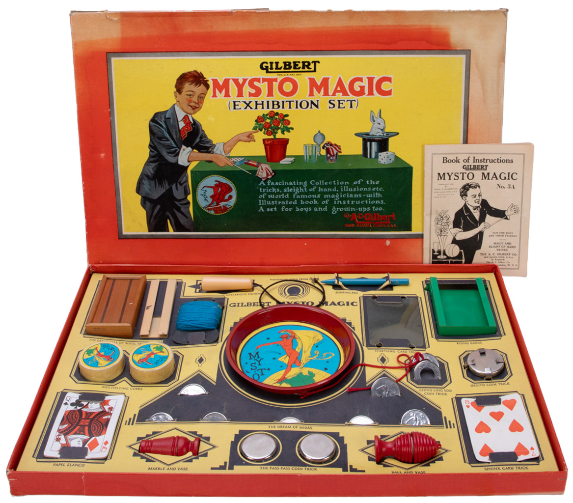 Mysto Magic Exhibition Set. Includes instructions. Contents complete. Chips and toning to box, else in very good condition.
