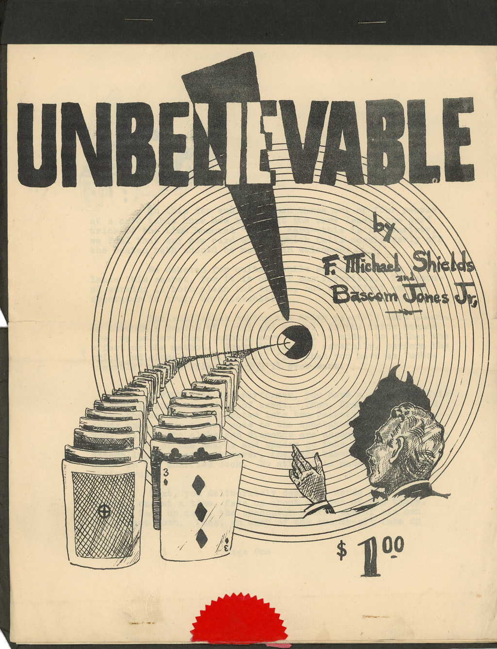 Manuscript for Unbelievable by F. Michael Shields and Bascom Jones Jr. Four pages. Ex-libris J.B. Findlay. Some wear, else in good condition.