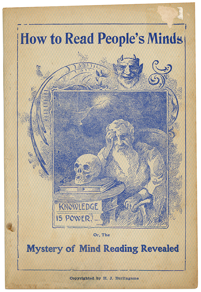 How to Read People's Minds, or the Mystery of Mind Reading Revealed. Pictorial wrappers, illustrated, 53 pages with adverts at rear. Mild toning, small chips to front cover, else in good condition.