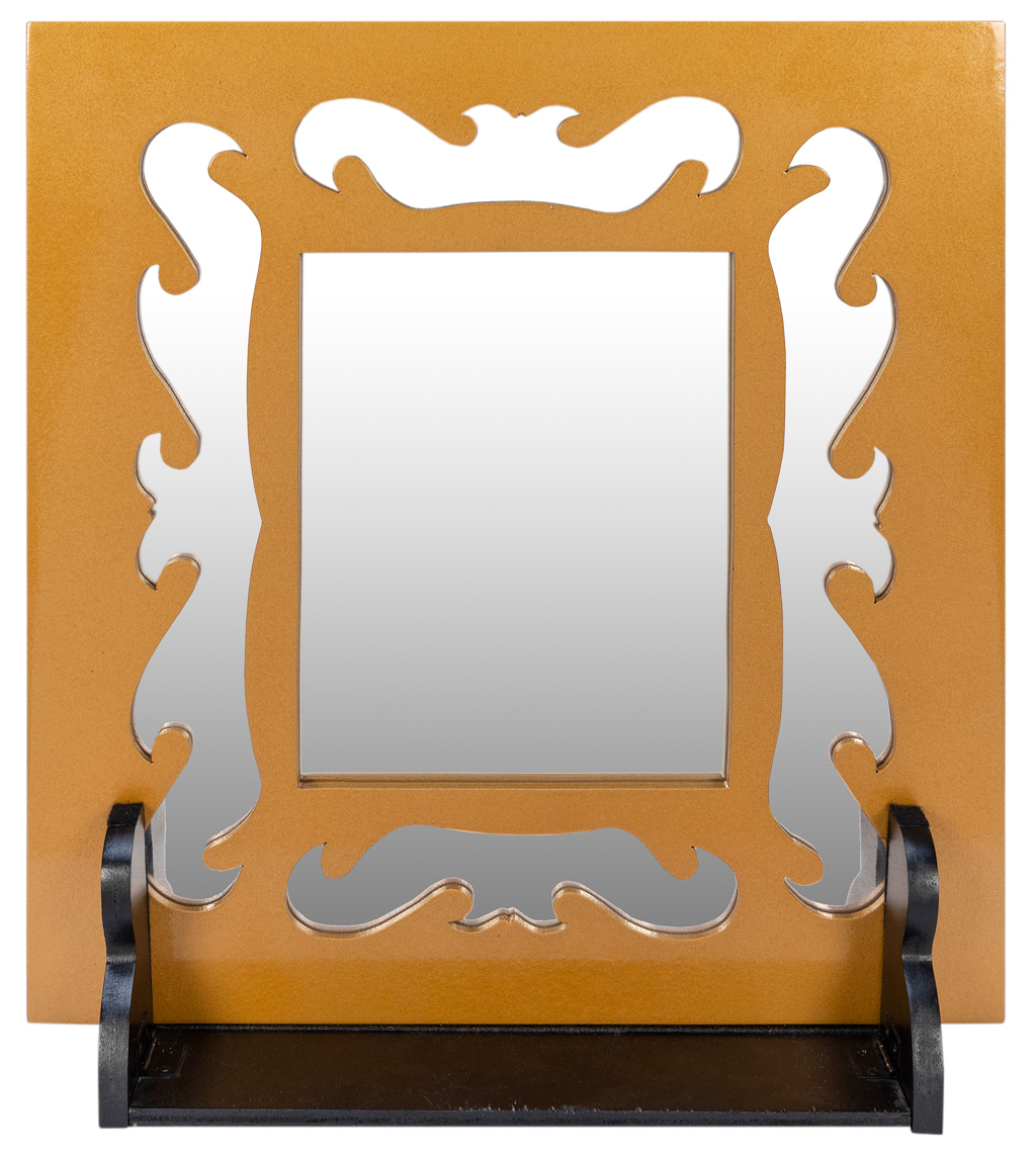 A silk held in front of a large glass mirror penetrates through the center of the reflecting surface, which can be shown on both sides. Includes mirror, stand, and instructions. Mirror is shown on both sides before and after the performance. Motorized mechanism allows the penetration effect to take place visibly and automatically, with the silk virtually melting away into the mirror. With padded locking carrying case. Very good condition. Winding mechanism not tested with batteries, though this is not necessary for the effect to work. A very well-made European effect originally imported by Howard Schwartzman.