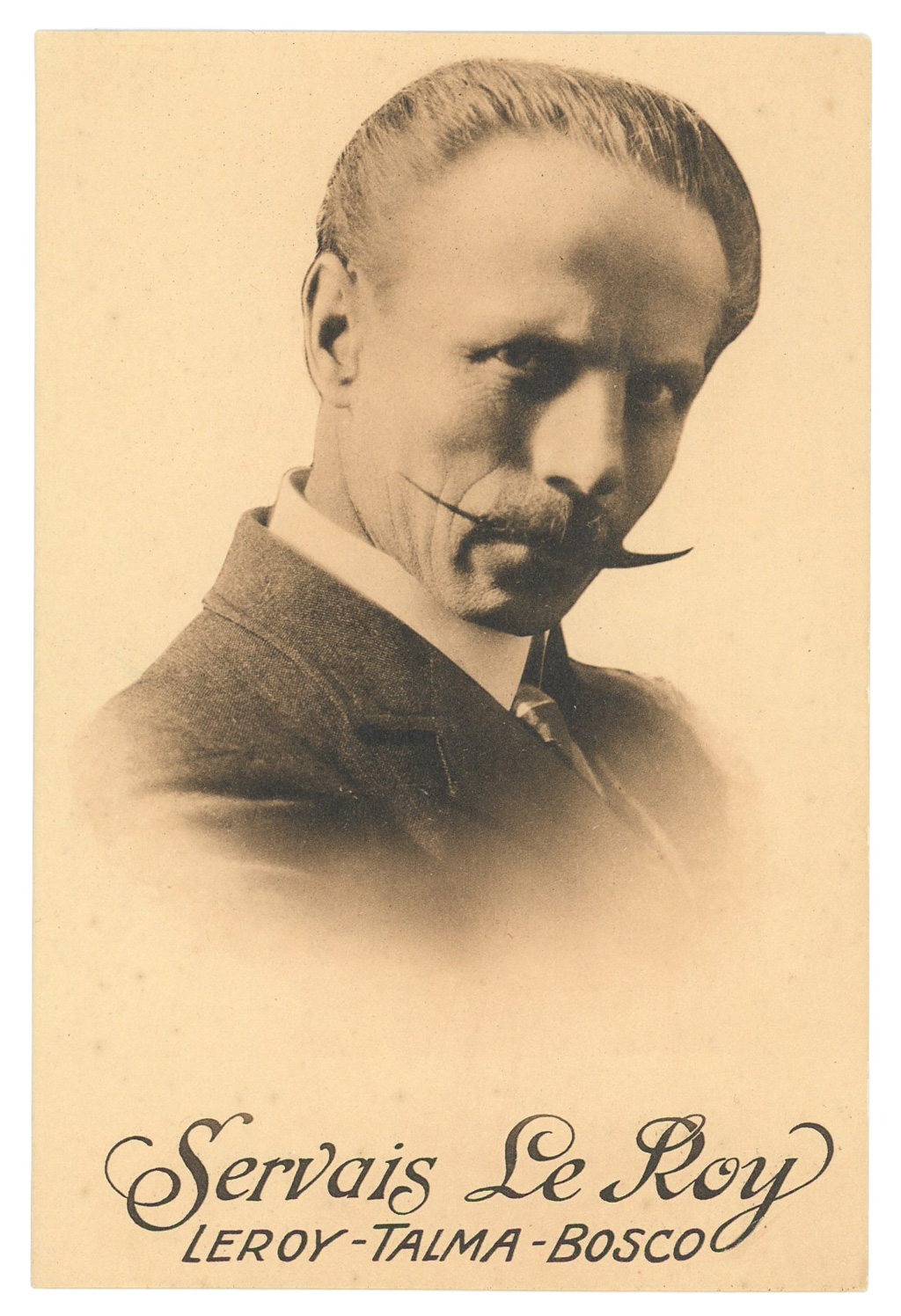 Portrait postcard of Servais LeRoy, advertising his show with Talma and Bosco. Unused. Very good condition.