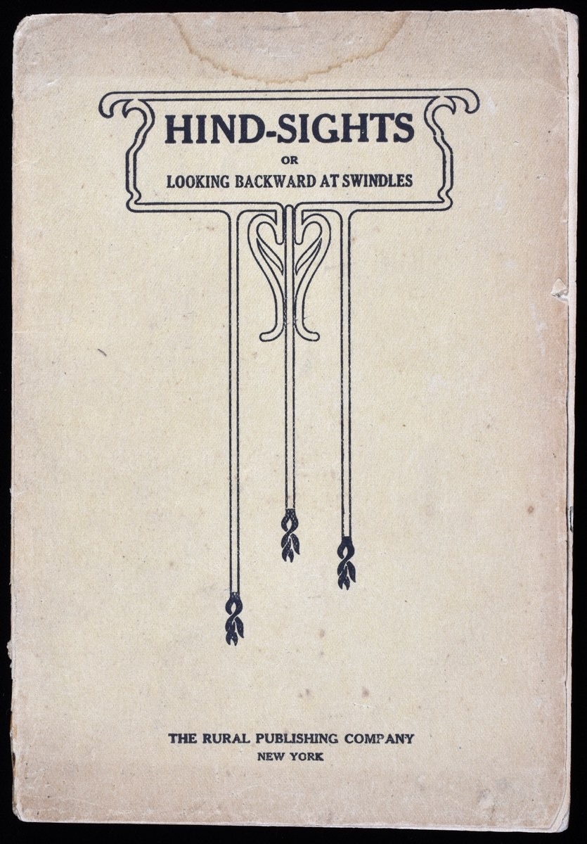Hind-Sights or Looking Backward At Swindles. Tan wrappers. 128 pages. Wrappers lightly soiled but fairly toned, chipping on wrappers and pages, pages toned on edges, binding worn and coming apart but intact. Fair.