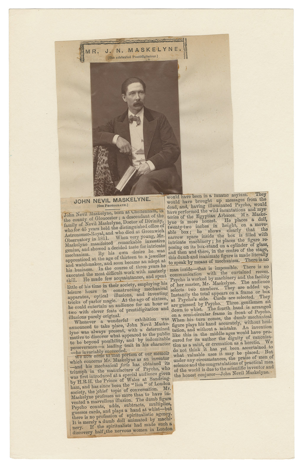 Includes a three-quarter length formal portrait of the celebrated Prestidigitator. Trimmed and pasted onto paper backing. Toning to sheet, areas of darkening due to adhesive. Good condition.