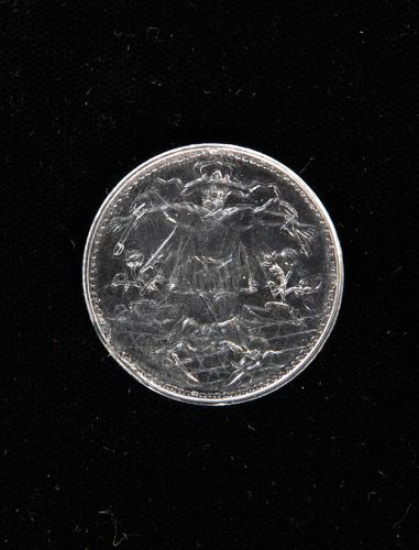 Devil waving wand over flower pot, coins dropping from other hand. Clear plastic. Very good condition.